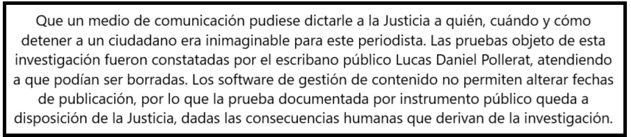 Los sitios Agencia Fe y Santo Tomé Al Día reflotan el texto de Sin Mordaza 38 horas antes de que efectivamente se produzca la detención, incluso antes de ser redactada por el propio Fiscal. (VER)